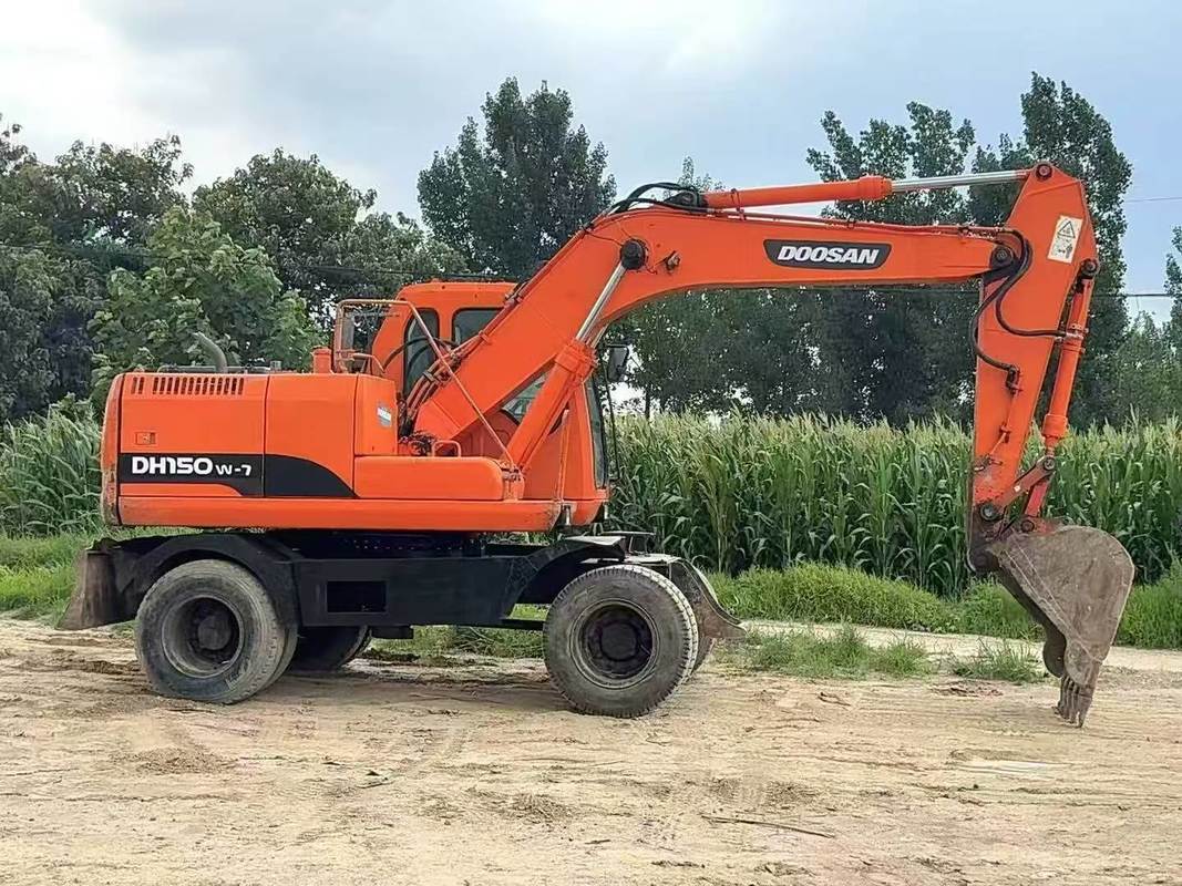 بیل مکانیکی چرخ دار Doosan DH150W-7 استفاده شده، وزن عملیاتی 15 تن، در شرایط خوب، ساعت کار کم. آماده صادرات از چین. ایده آل برای ساخت جاده، پروژه های شهری و عملیات معدنی سبک.